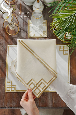 Welcome Elegance Gold Design Placemat Set - Waterproof Fabric - 6 Persons - 24 Pcs. Full Set