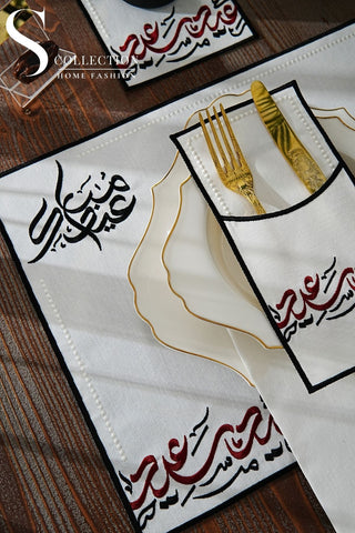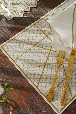 Eid Saeed Design Gold and Black Placemat Set - Waterproof Fabric - 6 Persons - 24 Pcs. Full Set