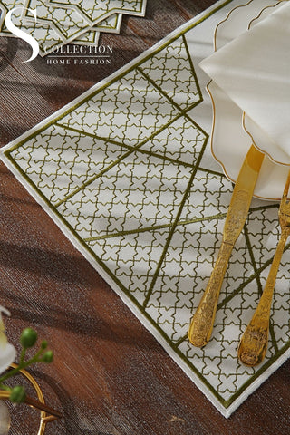 Eid Saeed Design Green and Grey Placemat Set - Waterproof Fabric - 6 Persons - 24 Pcs. Full Set