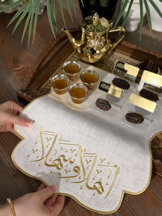 Al-Barakah Design Tray Cover - %100 Linen Fabric - Gold Embroidered