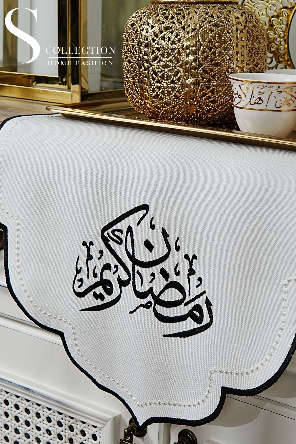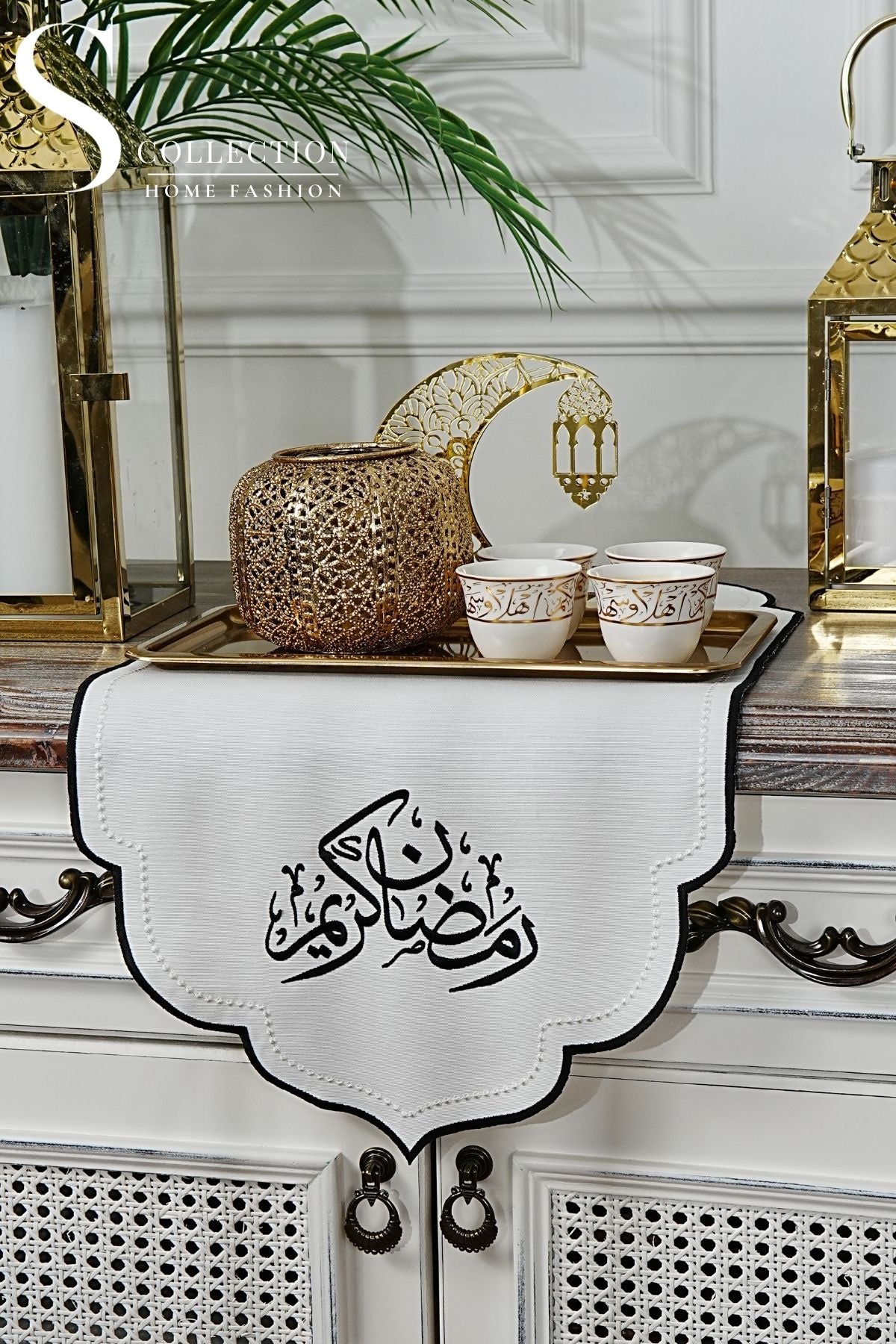Ramadan Kareem Design Mini Runner - Waterproof Fabric - Black Embroidered