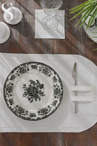 Dora Off White Pocket Design Placemat Set - Waterproof Fabric - 6 Persons - 18 Pcs. Full Set