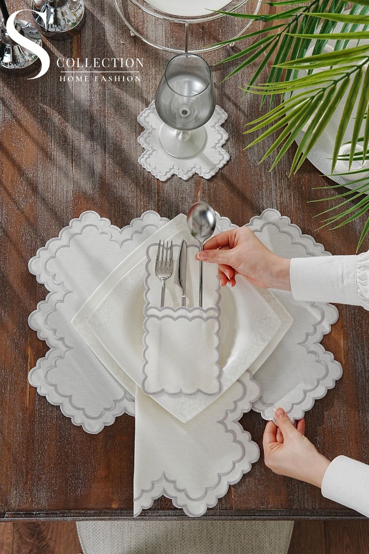 24-Piece Embroidered Set for 6 People