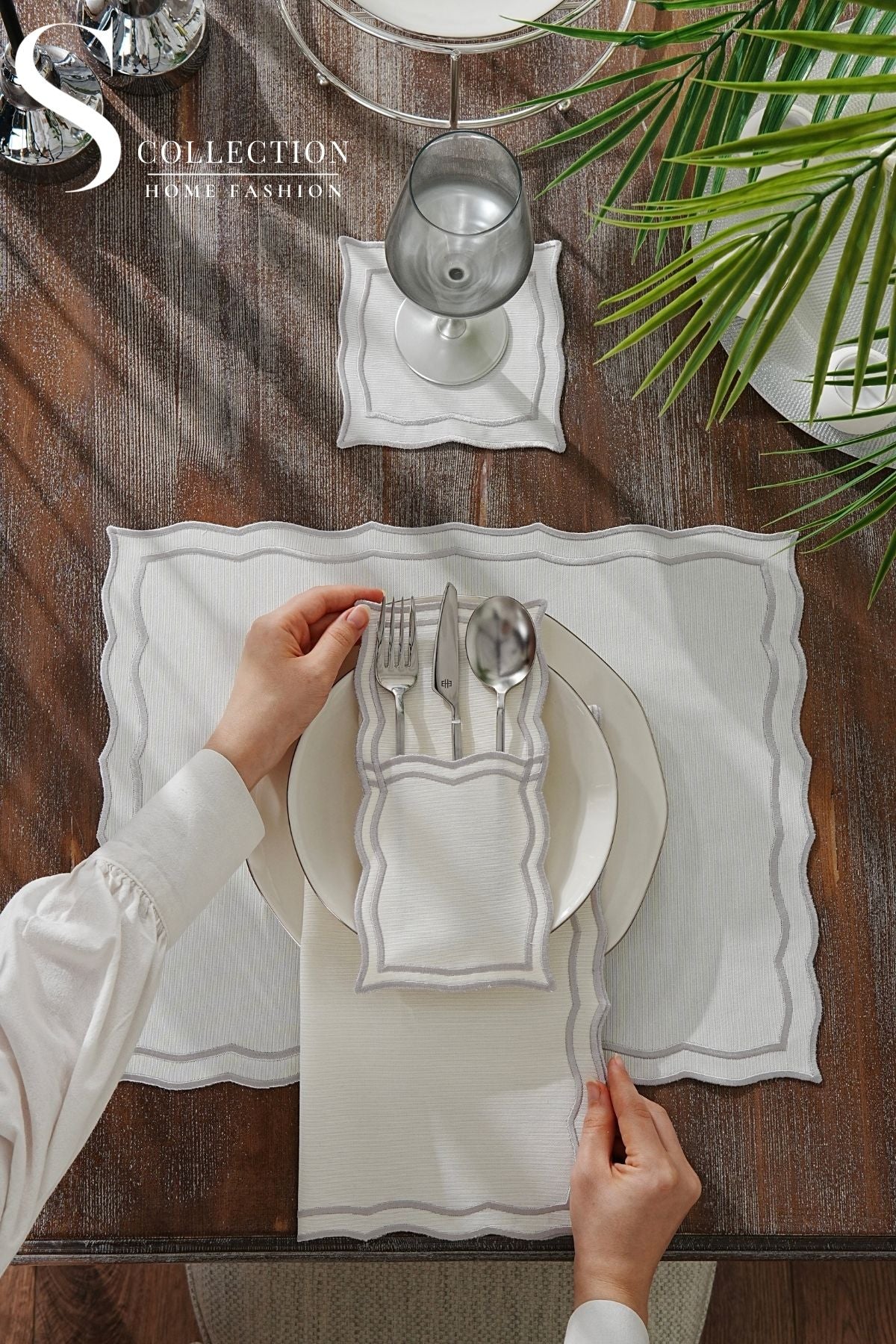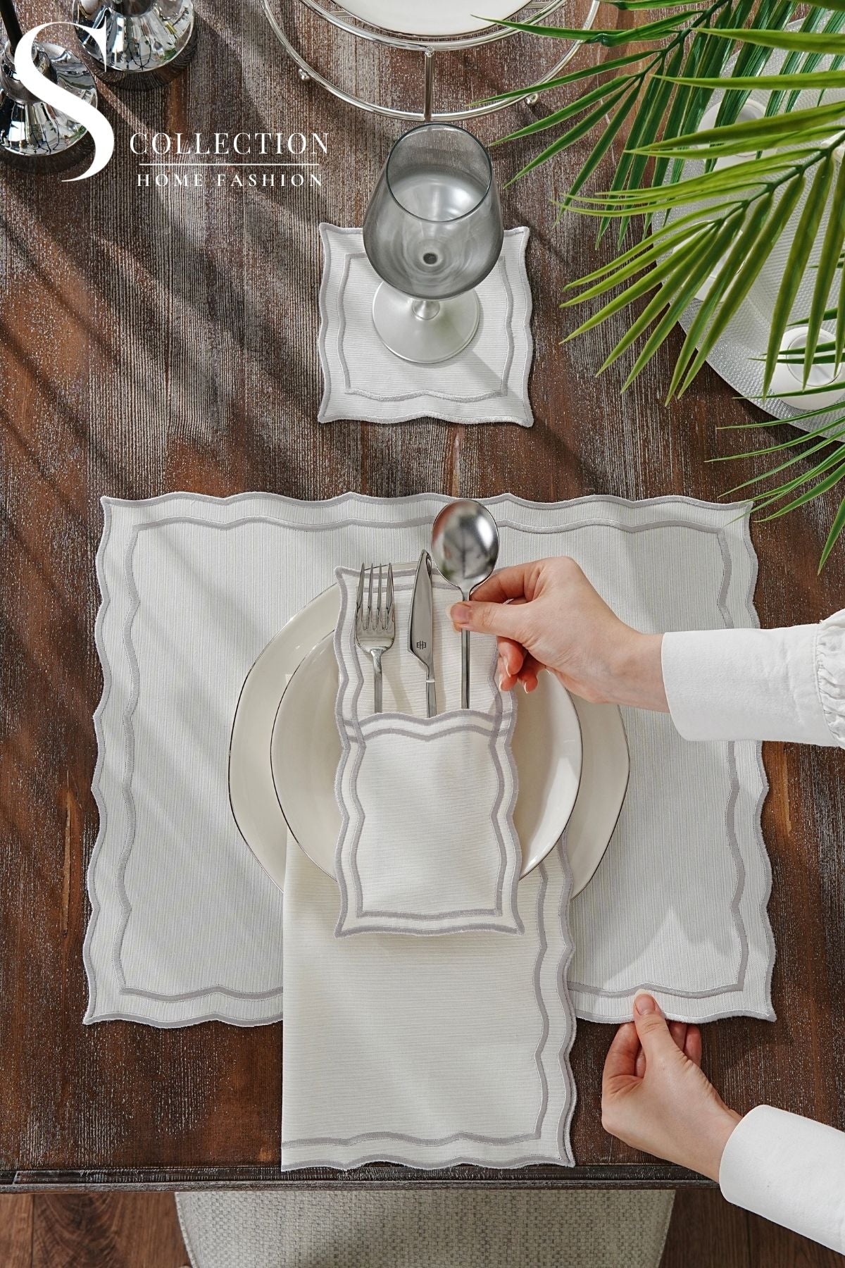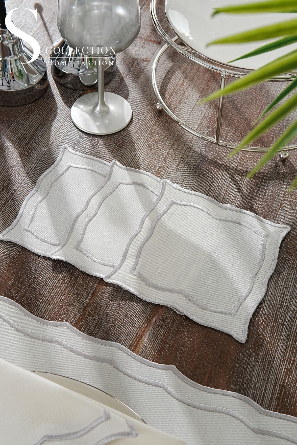Leo Silver Design Placemat Set - Waterproof Fabric - 6 Persons - 24 Pcs. Full Set